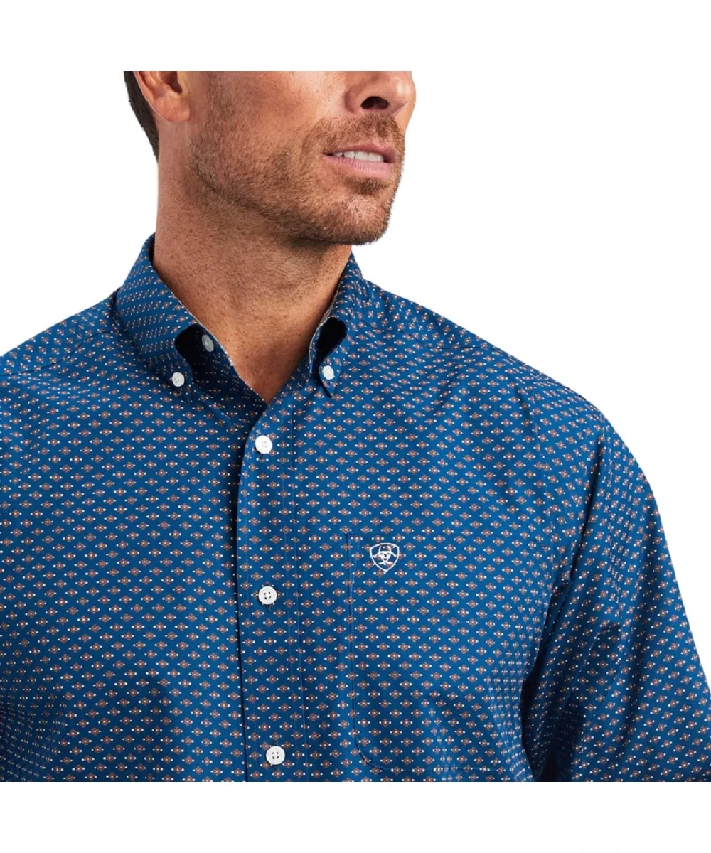 100% Cotton Printed Poplin; Wrinkle Free Finish; Long Sleeve; Classic Button Down Collar, Placket, And Cuffs; Contrast Interior Trim On Collar And Cuffs; Single Open Left Chest Pocket With Logo Embroidery; Straight Back Yoke With Logo Embroidery; Greater Arm Mobility For Freedom Of Movement; Color: Poseidon; Style #10041568