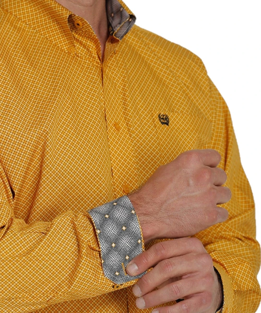 100% Printed Cotton Plain Weave; Button Down Collar; Long Sleeve; Gold Buttons; Single Open Left Chest Pocket With Logo Embroidery; Button Down Placket And Cuffs; Contrast Trim And Cuffs; Color: Gold Geometric Print; Style #MTW1105448