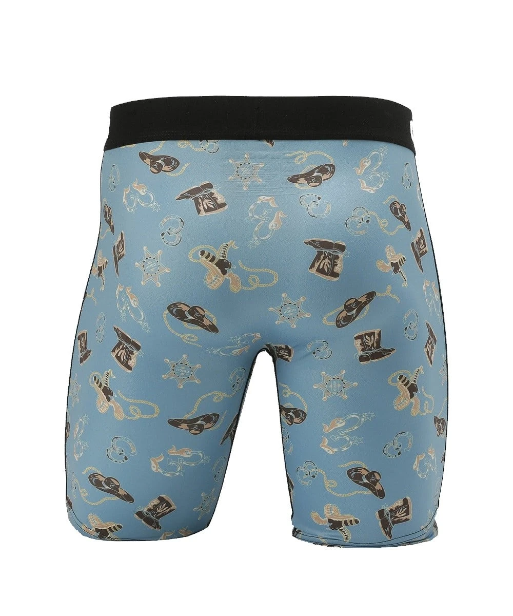 Poly-Spandex; 9″ Boxer Brief; Jacquard Logo Waistband; Contrast Topstitch; No Ride Leg Seams; Tag Free Design; Antimicrobial Treatment; Four Way Stretch Moisture Wicking Fabric; Color: Turquoise; Style #MXY6001022
