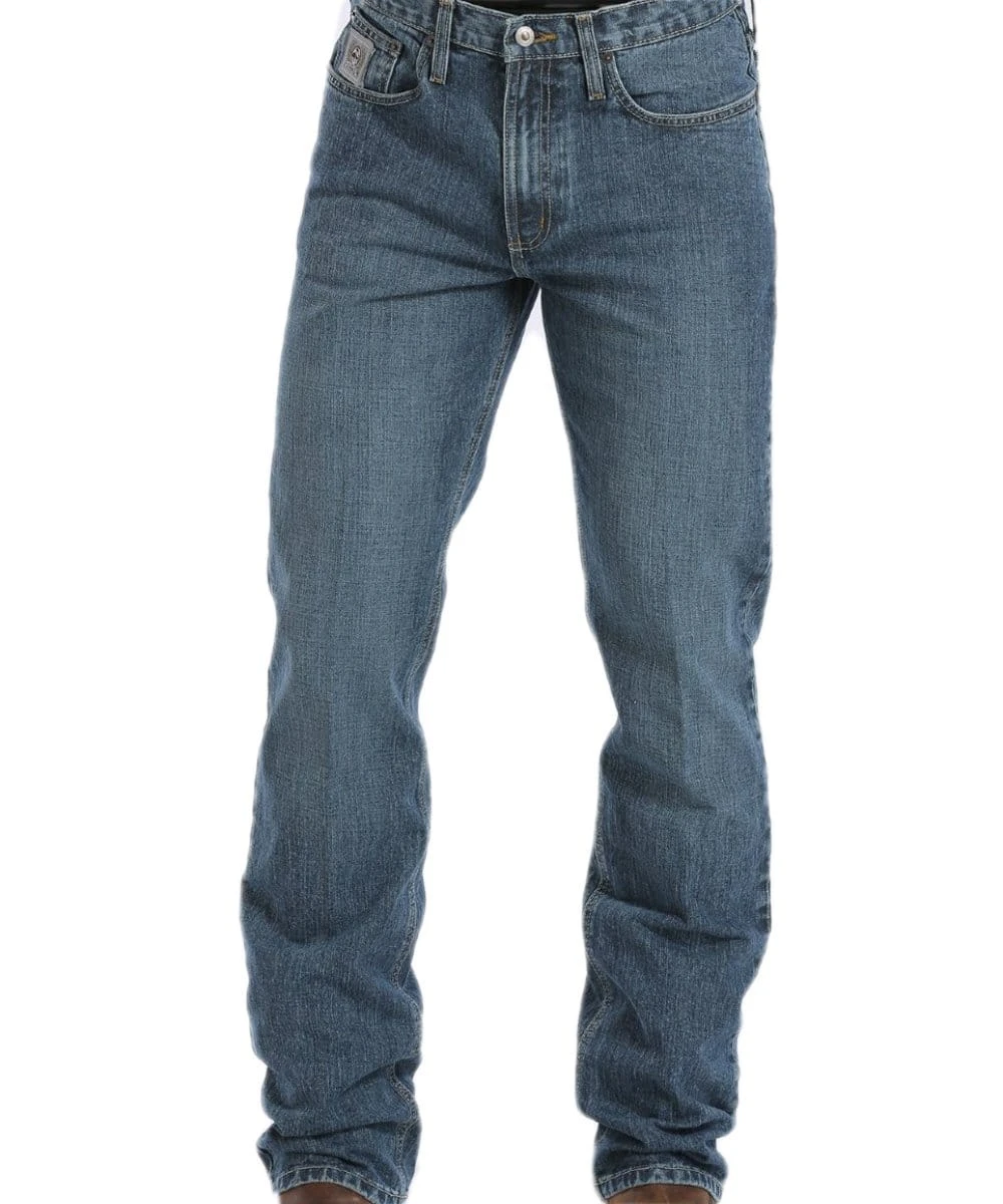 Cinch Men’s Silver Label Jeans; Color: Stonewash; Relaxed Waist; Fitted Hip,Thigh And Knee; Midrise; Straight Leg; Style #MB98034001