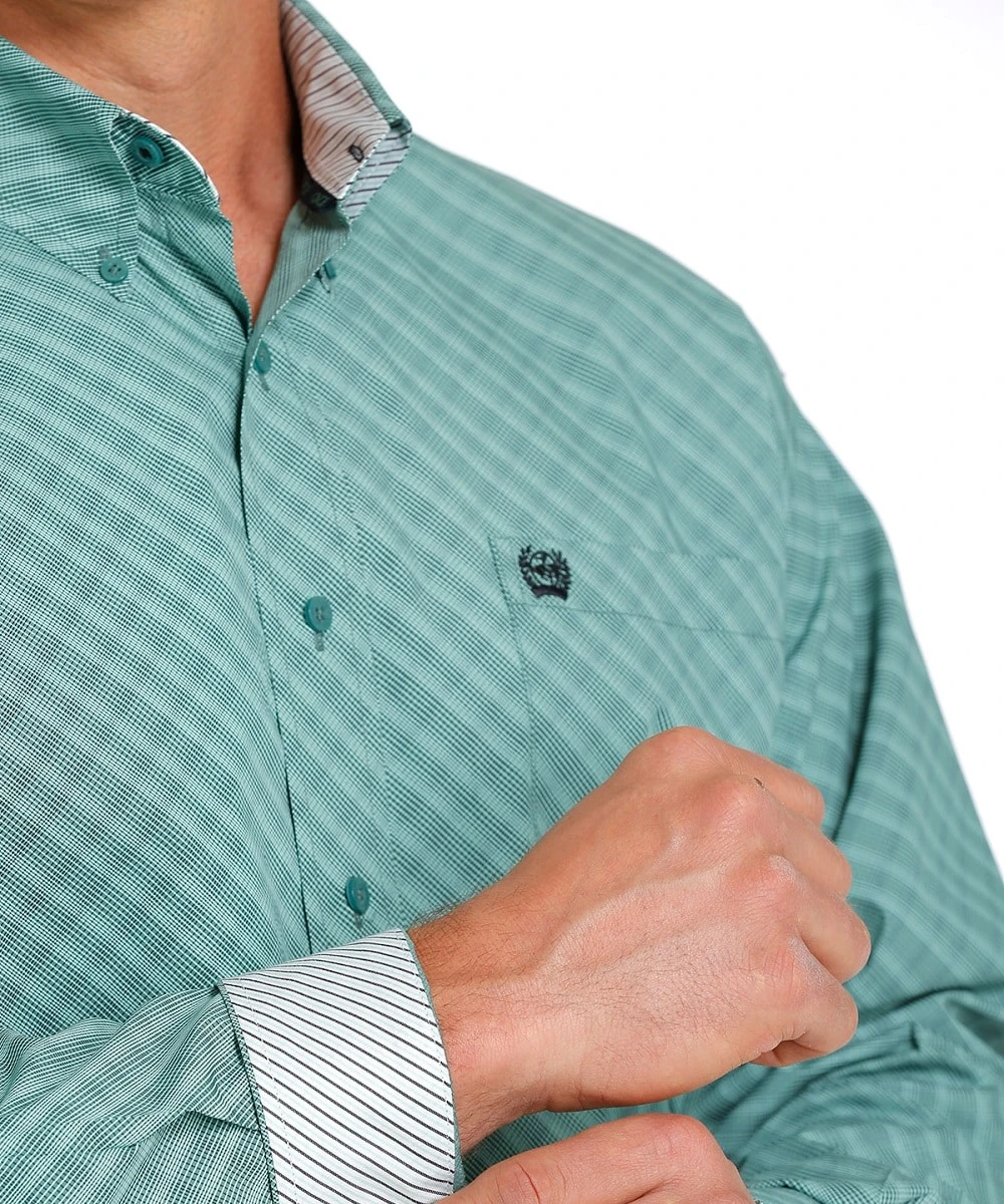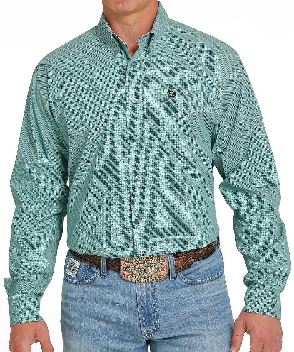 100% Cotton Body; 53% Polyester/34% Tencel/13% Cotton Contrast; Color: Green/Navy Stripes; Green Buttons; Button Down Collar; Single Open Pocket With Navy Logo Embroidery; Contrast Navy/Mint Green/White Striped Neckband, Collar; And Wrist Cuffs; Long Sleeve; Style #MTW1105410