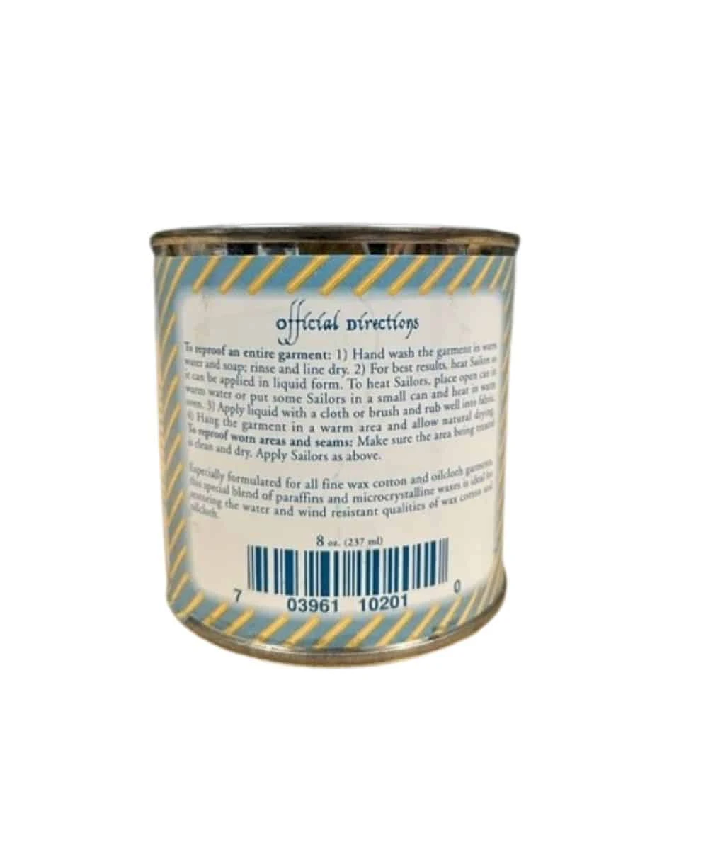 Special Blend Of Paraffins And Microcrystalline Waxes; Reproofing Treatment Especially Formulated For All Fine Wax Cotton And Oilcloth Garments; Ideal For Restoring The Water And Wind Resistant Qualities Of Such Garments; 8 Oz Can; Style #SRT8