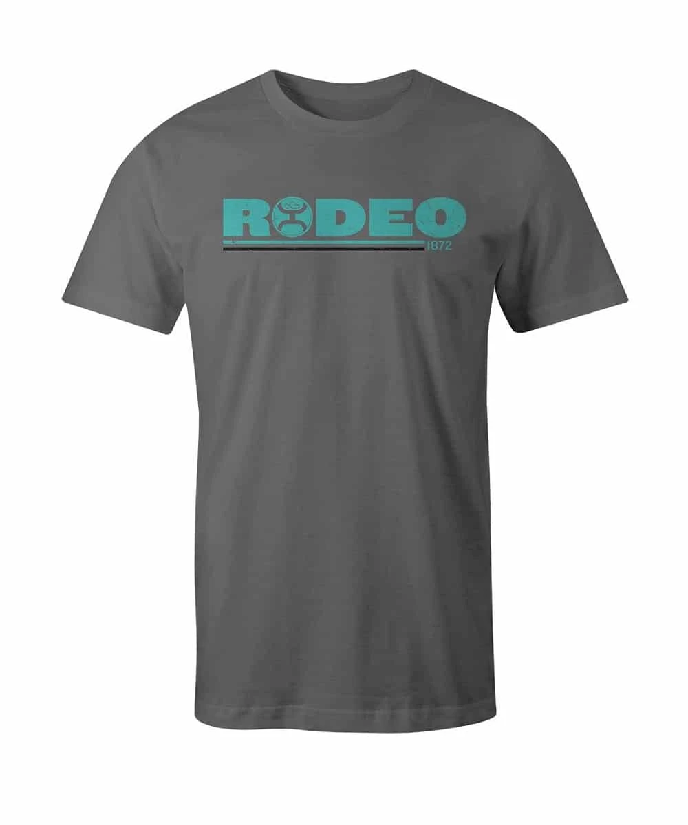 50% Cotton/50% Polyester; Crew Neck; Front Turquoise And Black Graphic Tee Logo Print; Color: Heather Gray; Style #HT1532GY