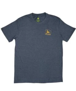 60% Cotton/ 40% Polyester; Color: Rouge; Crew Neck; Short Sleeves; Front Has John Deere Logo On Left Chest; Back Design Has A Tractor And Says “John Deere Tractors & Plows Moline, Illinois”; Style #13002239