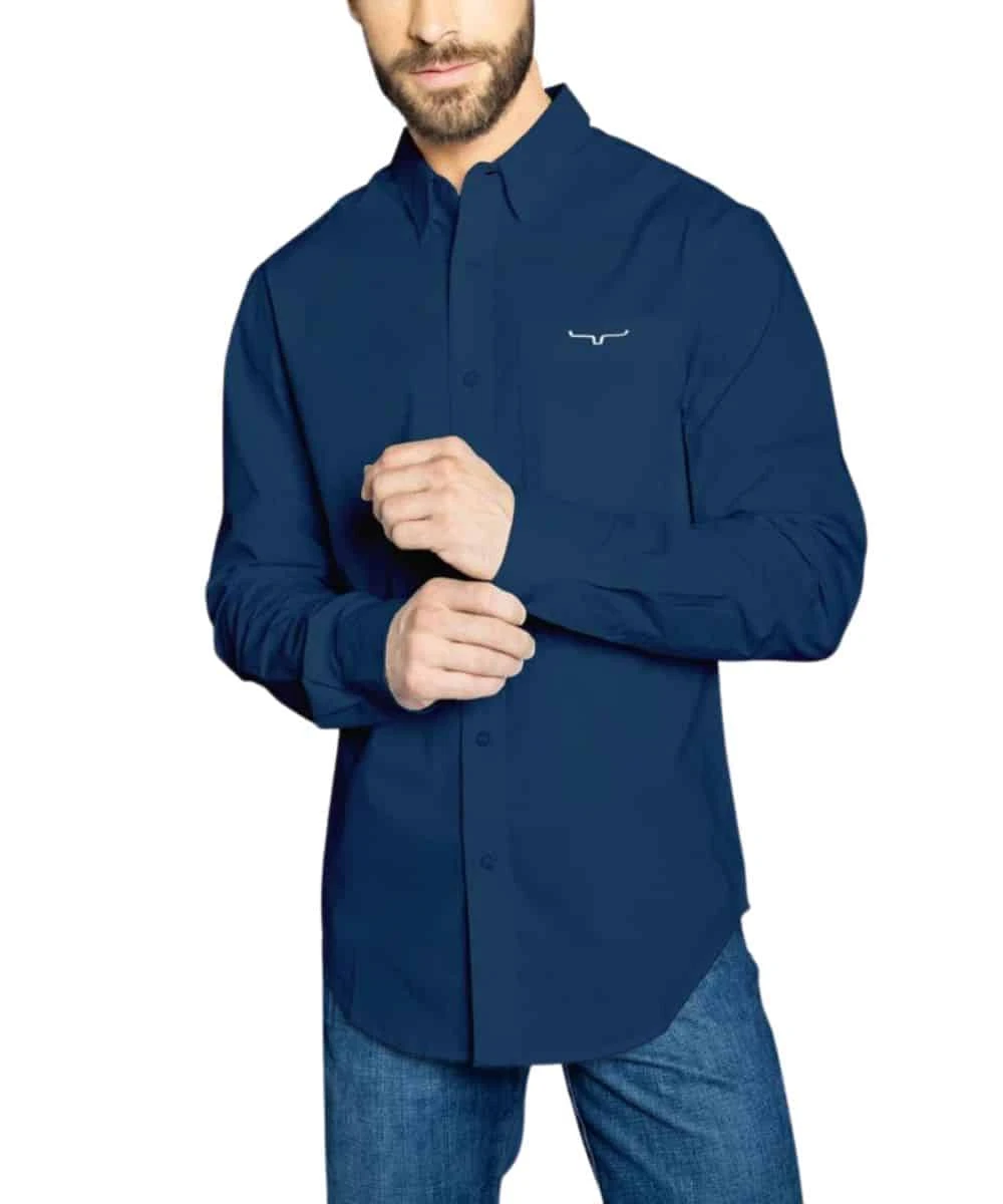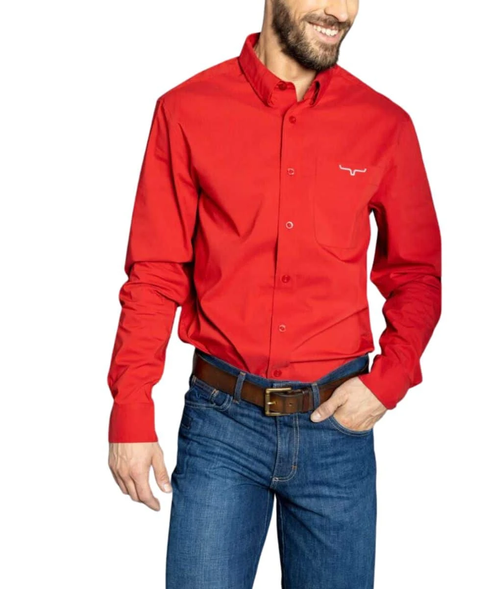 60% Cotton/ 30% Cooltex Polyester/ 8% Polyester/ 2% Lycra; Color: Navy, Red, White, And Black; Spread Collar; Button Down Front; Kimes Logo On Left Chest Pocket; XL Arms And Body; Button Cuffs; Western Cut; Cooltex Technology; Style #KR TEAM SHIRT