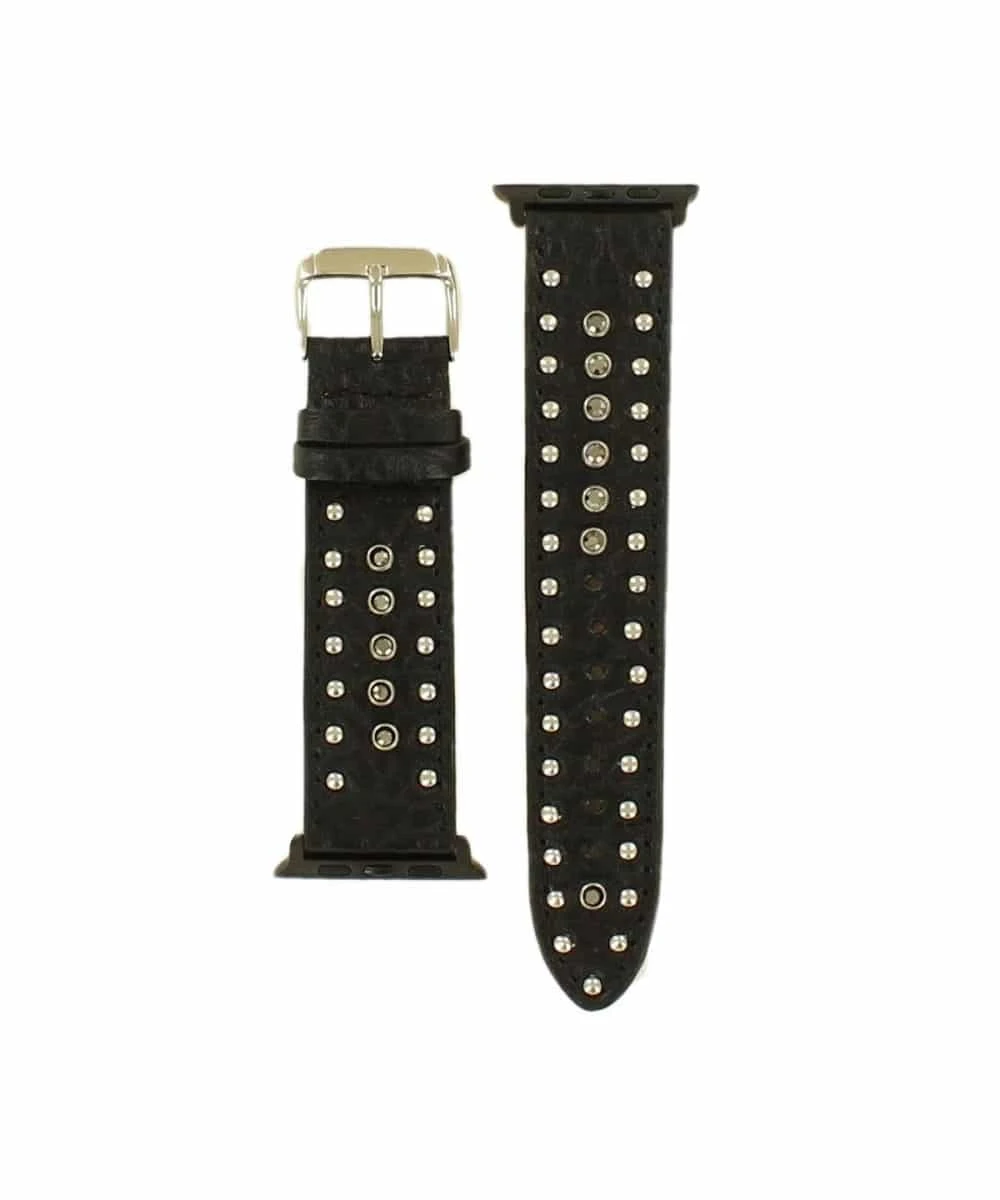 Genuine Black Leather; Silver Stud And Black Stone Accents; Size Medium Fits: 38-40MM; Size Large Fits: 42-44MM; Buckle Closure; Style #N3100301
