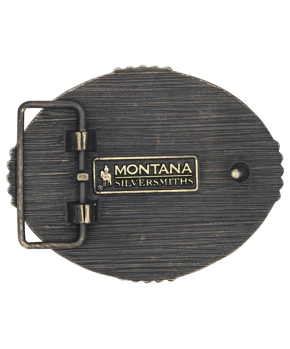 Brass Over White Metal Alloy; Oval Shaped Belt Buckle; Classic Silhouette Of Cowboy Atop A Bucking Bronco; Western Filigree Surrounds Figure Along With Roping And Gold Beading; Gold Toned And Antiqued; Standard 1.5″ Belt Swivel; Measures Approximately: 3.9″ W x 3.14″ H; Style #A950