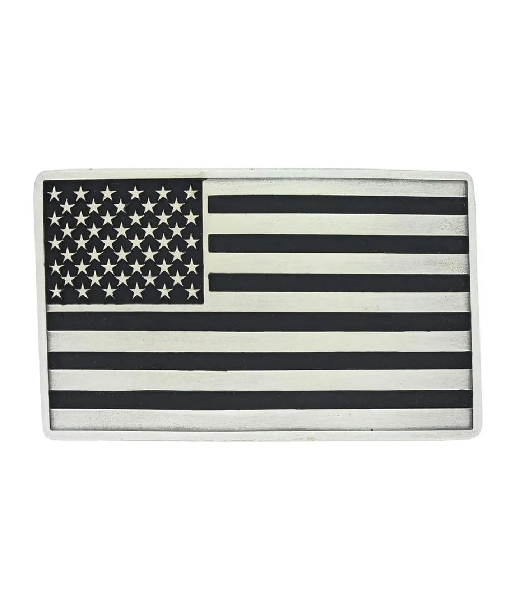 Silver Plate Over A Solid Cast White Metal Alloy Base; Antiqued Silver Finish; American Flag Design; Standard 1.5″ Belt Swivel; Style #A644