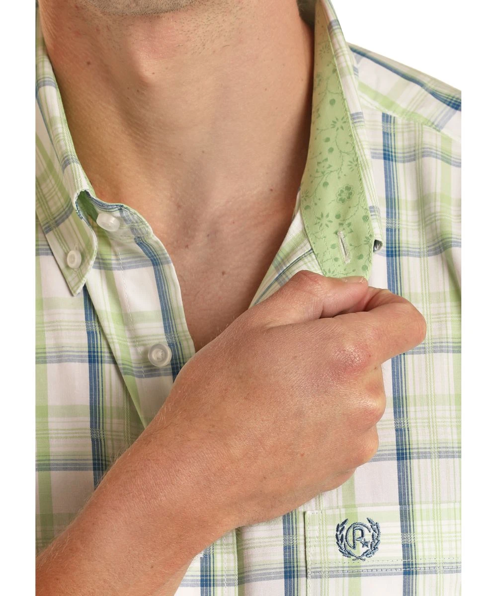 100% Cotton; Short Sleeve; Button Down Collar And Placket; Single Open Chest Pocket With Logo Embroidery; Contrast Interior Trim; Color: Kelly Green Plaid; Style #PSMS1DR0M5