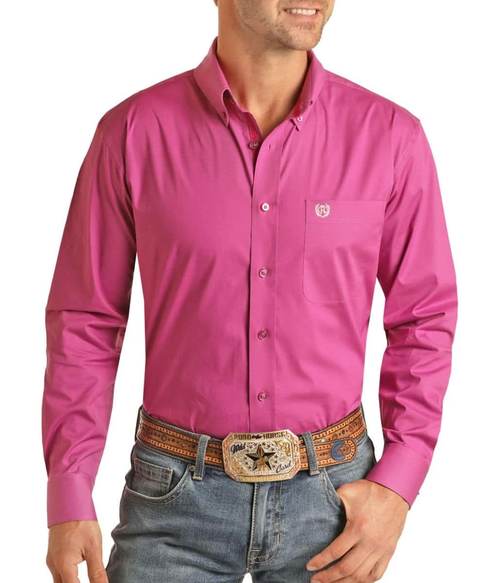 97% Cotton/3% Spandex; Stretch Poplin; Long Sleeve; Button Down Collar, Placket, And Cuffs; Dark Orchid Buttons; Single Open Chest Pocket With Logo Embroidery; Color: Dark Orchid; Style #36D3161