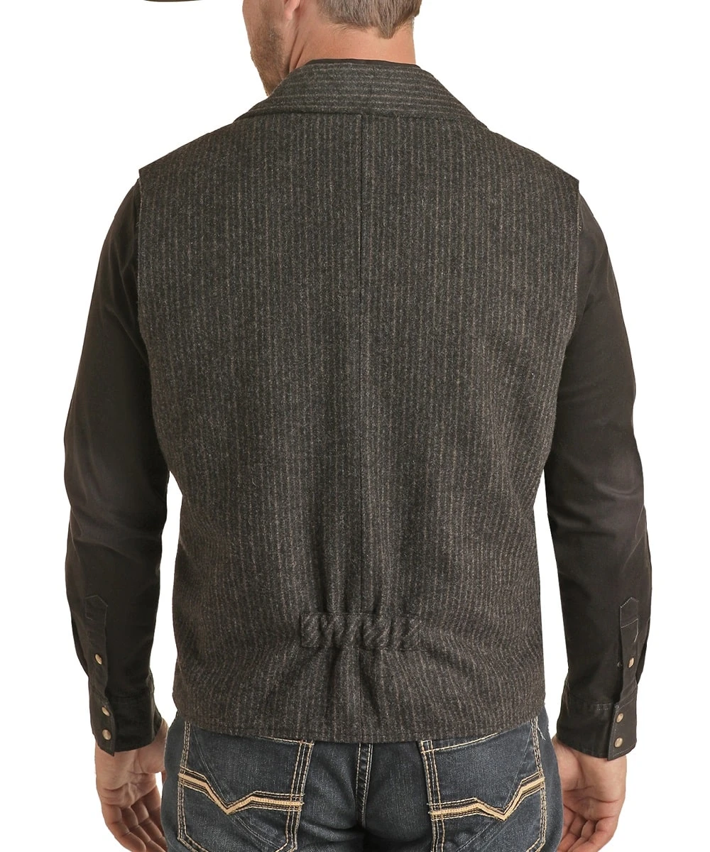 80% Wool/20% Polyester; Striped Vest; Brushed Silver Buttons; Welt Pockets On Front; Cinched At Back; Color: Black; Style #PRMO98RZZK