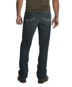 99% Cotton/1% Spandex; Reflex Stretch Technology; Regular Fit; Medium Vintage Wash; Whiskers; Fading; Sanding; Fashion Back Pocket; Straight Leg; Style #M1P1762