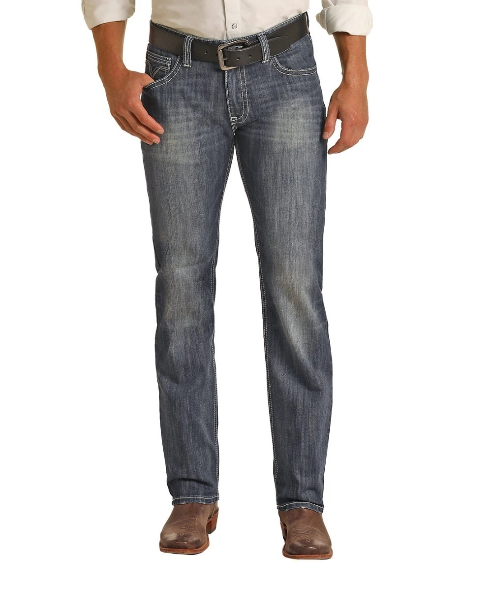 99% Cotton/1% Spandex; Style: Revolver; Dark Vintage Wash; Light Whiskering And Fading; Five Pocket Style; âVâ Two Tone Rear Pockets With Fashionable Stitching; Slim Fit; ReFlex Stretch Technology; Straight Leg; 17âł Leg Opening; Style #RRMD1RRYWI