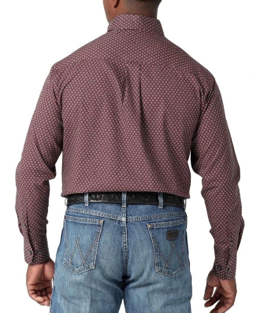 60% Cotton/40% Polyester; Color: Burgundy Print; Button Down Collar; Single Left Chest Pocket With Button Closure; Logo Embroidery On Pocket; Straight Back Yoke; Box Pleat; Adjustable Button Cuffs; Style #112317053